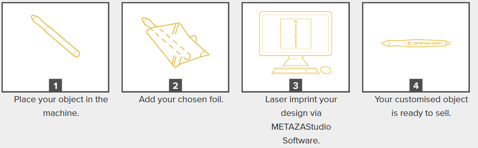Simply enter your personalised text, upload a graphic and with precision and ease, your unique designs are transferred onto leather1, polycarbonate, acrylic and other plastics. Easy to use and safe to operate, these Class 1 laser devices can heat transfer metallised foils onto gifts, promotional giveaways, merchandise and so much more. With our laser decorators, you’ll take objects from average to amazing in minutes.