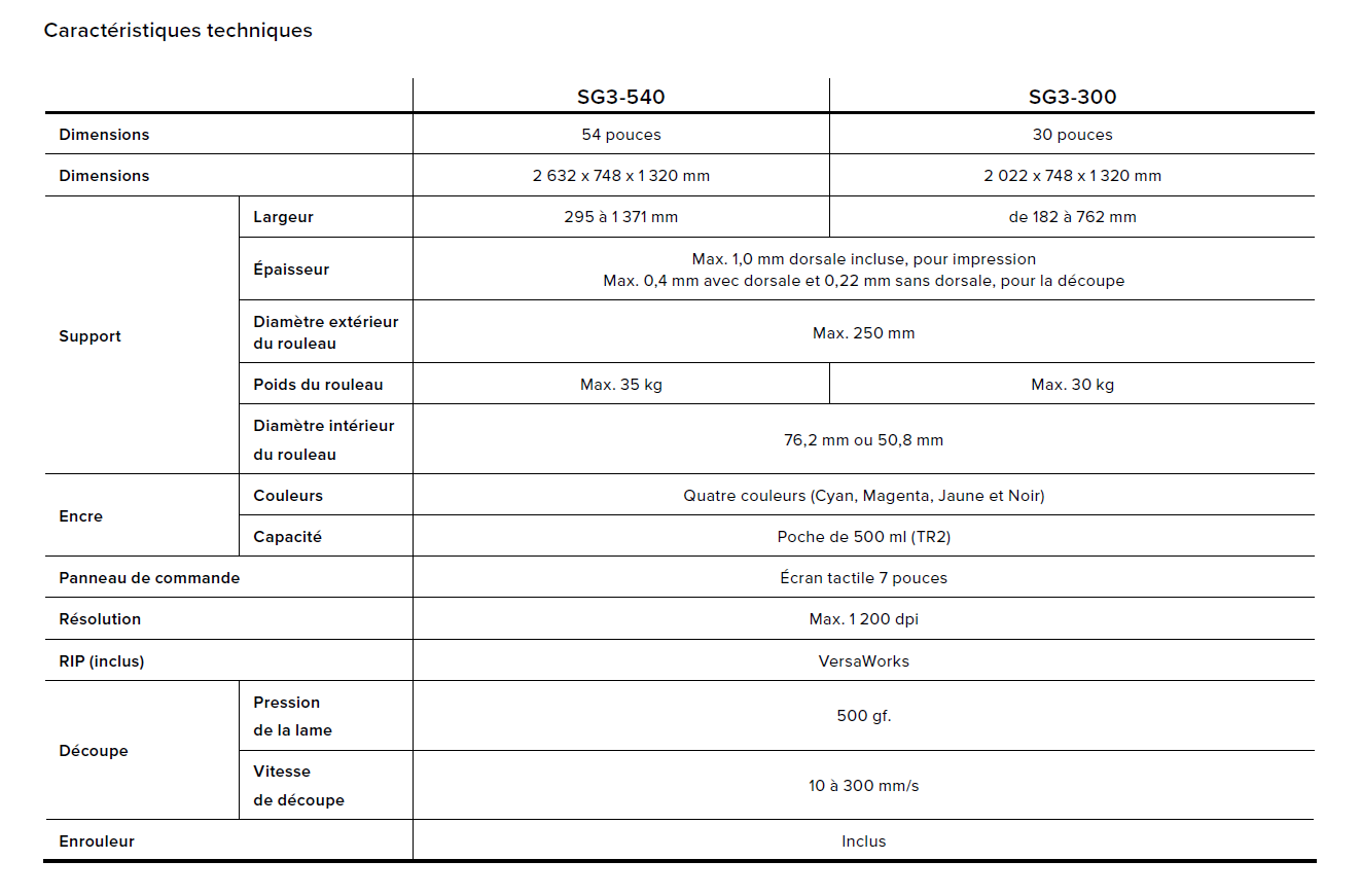 +Un enrouleur inclus avec toute la gamme SG3 vous offre un meilleur contrôle et une plus grande précision d'impression et de découpe dans tous les formats.